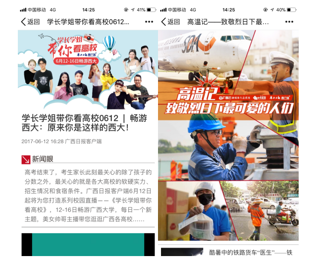 集团新媒体部推出的致敬高温下的劳动者专题《高温记》、暑假推出的视频直播《学长学姐带你看高校》等反映民生、贴近地气产品,得到了一致好评,读者纷纷转发。