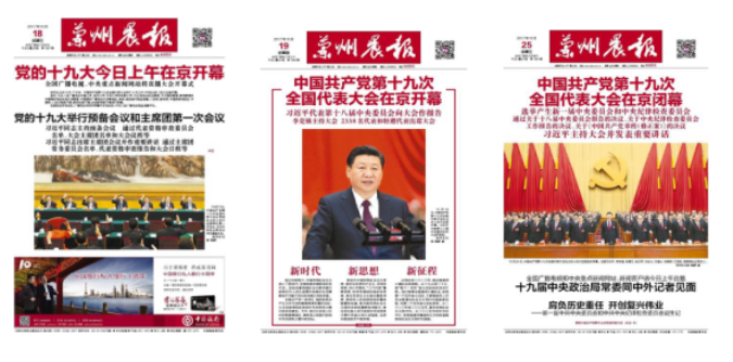 兰州晨报把党的十九大的宣传报道作为新闻宣传的重中之重,高度重视,精心安排部署,全面落实责任,浓墨重彩做好党的十九大的宣传报道。