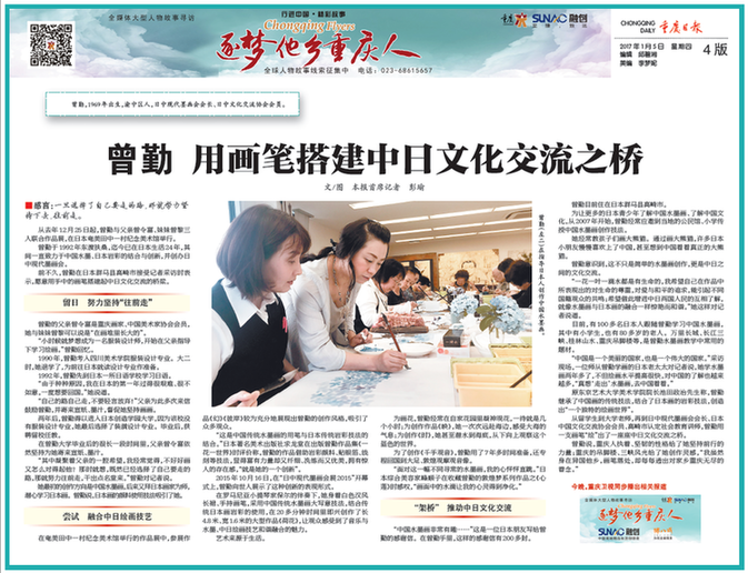 2、讲好重庆故事,树立时代楷模。2017年上半年,重庆日报继续开展“逐梦他乡重庆人”大型采访活动,记者分赴全国各大省市、港澳地区,以及部分国家寻访在他乡逐梦的重庆人,深入挖掘,推出有温度、有深度的逐梦故事。《庞中华:执着逐梦,成中国硬笔书法第一人》《黄萌:从甲骨文到优步,执着逐梦硅谷》《聂绍明:在战火纷飞的苏丹修路架桥》等报道品读的是故事,彰显的是精神,起到了激发正能量、凝聚“中国梦”认同感和归属感作用,为重庆经济社会发展提供了重要精神动力。该策划荣获第二十七届中国新闻奖“新闻名专栏”一等奖,实现了重庆日报在中国新闻奖上新的突破。
