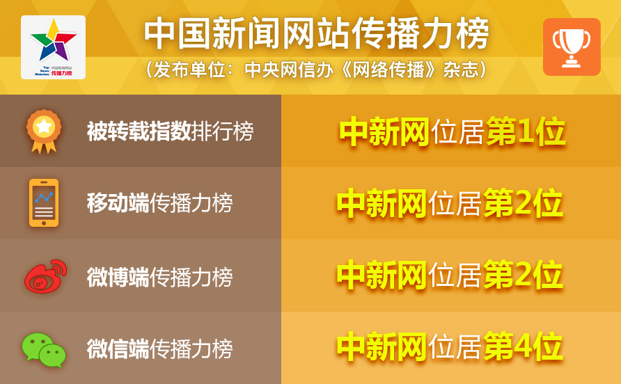 (中新网在《网络传播》杂志公布的“中国新闻网站传播力榜”的排名情况)