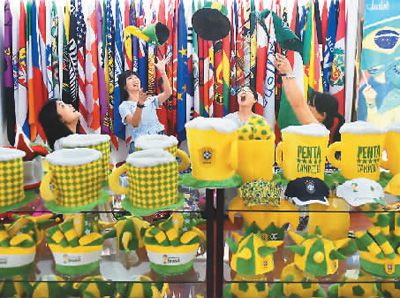 浙江武义金力球迷用品有限公司是专业生产手揺旗、围巾、假发、头饰、喇叭等球迷用品的企业,本届世界杯俄罗斯、巴西、法国、沙特等球队,都从该企业订购大量球迷用品。张建成摄(人民视觉)