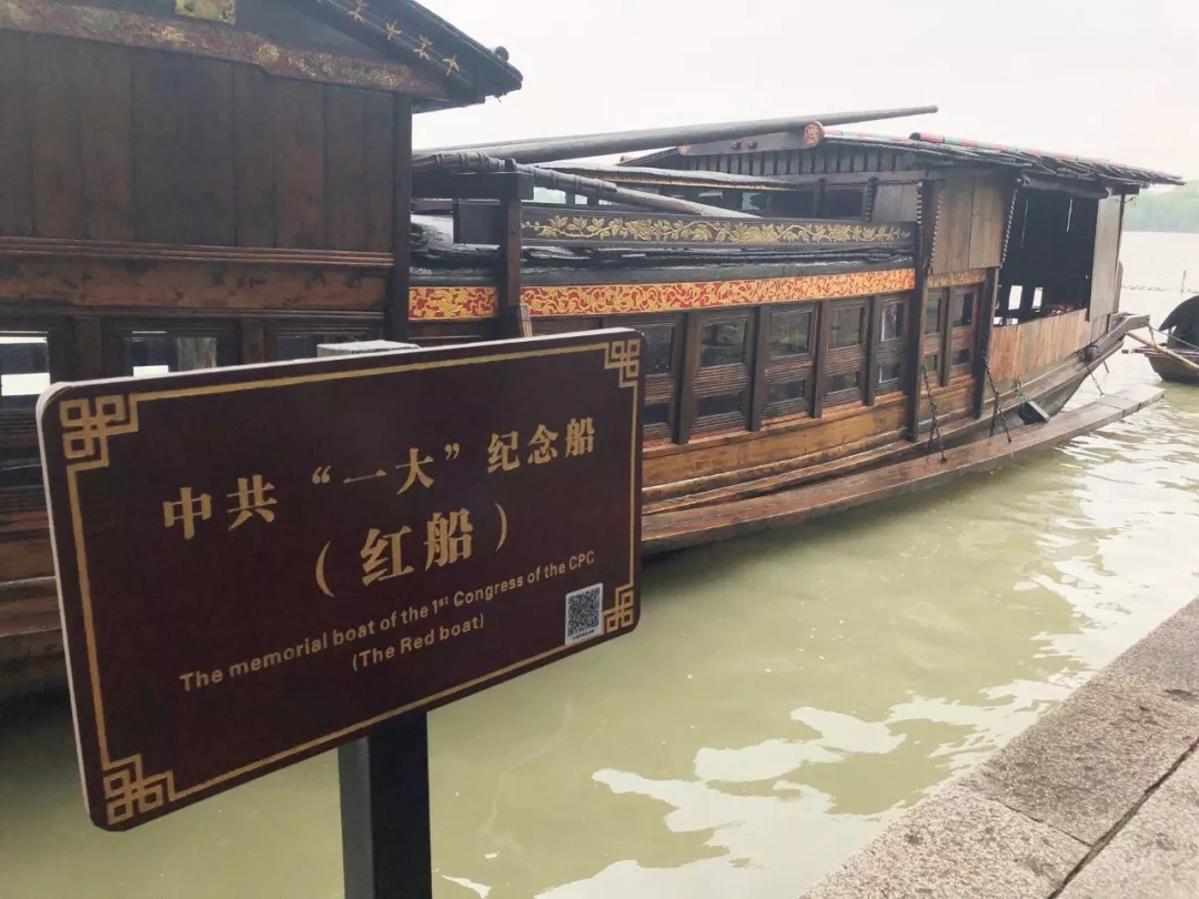 在浙江嘉兴南湖,记者们瞻仰了红船