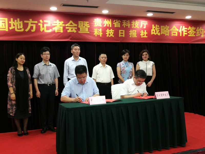 7月9日上午,2018科技日报社全国地方记者会在贵阳召开。会上,为推动和宣传贵州省科技创新工作,科技日报社与贵州省科技厅签订战略合作协议。助力实施贵州大扶贫、大数据、大平台三大战略,协助共建生态贵州。
