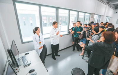 一部《我在故宫修文物》让故宫成为了网红。其中提到的文物医院令人心驰神往。在2018年6月9日“文化和自然遗产日”当天,故宫文物医院迎来了第一批40名预约观众。图为故宫博物院院长单霁翔(左二)在故宫文物医院首次开放活动现场为观众讲解。新华社记者 刘 潺摄