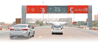 在阿联酋阿布扎比—迪拜高速公路上,欢迎习近平主席来访的标语格外醒目。记者 韩晓明摄