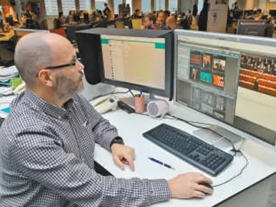 26日22时30分,马德里郊区托雷洪—德阿尔多斯的罗托马德里印务中心。早已守候多时的图片编辑安东尼奥•贝塞诺收到了从编辑部传来的27日报纸电子版,马上对版面图片和色泽比对进行调整,力求尽善尽美。