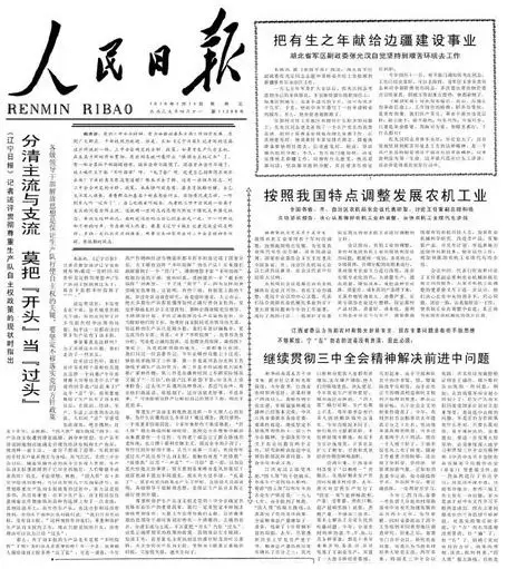 《人民日报》1979年5月16日刊发《分清主流与支流 莫把“开头”当“过头”》
