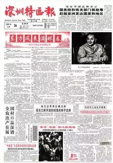 1992年3月26日,《深圳特区报》发表《东方风来满眼春——邓小平同志在深圳纪实》一文,这篇文章引来了第二次思想解放。