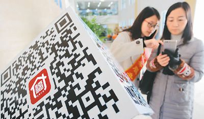 2018年11月27日,江西省吉安市安福县政务服务中心工作人员在教市民扫描二维码,群众办事实现“手机移动办”。刘丽强摄(人民图片)
