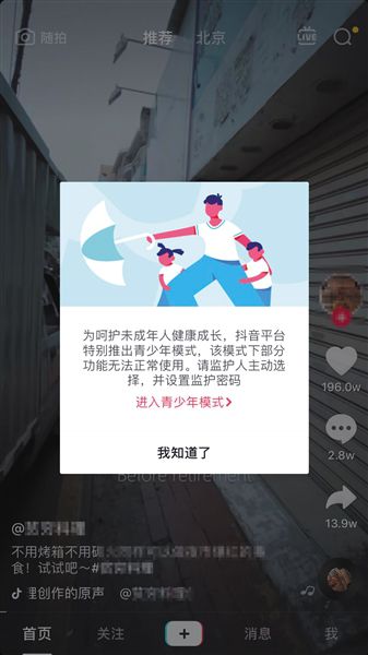 抖音相关负责人也向记者表示,系统将通过相关技术手段识别疑似未成年人用户,并为其切换“青少年模式”。