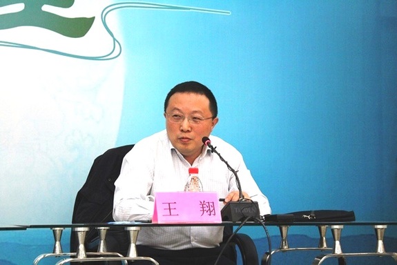 第129期“新闻茶座”主讲嘉宾、全国人大法工委经济法室副主任王翔 高璇 摄