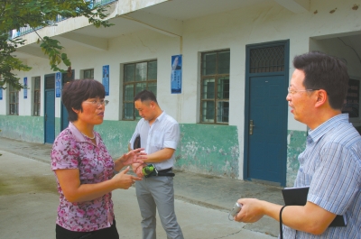 记者丁需学(左)在郏县采访