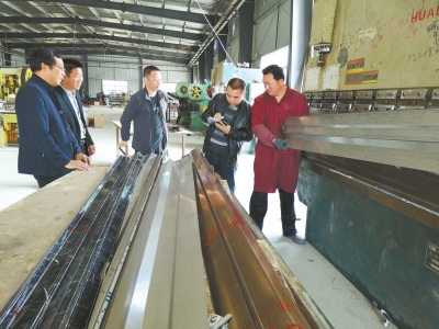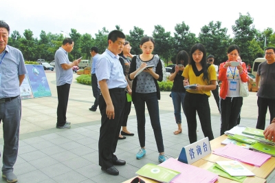 记者焦莫寒(右四)跟随省生态环境厅在三门峡市走访调研,助力我省打好环境攻坚战