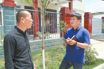 记者宋广军(右)采访大王寨村党支部书记王春良