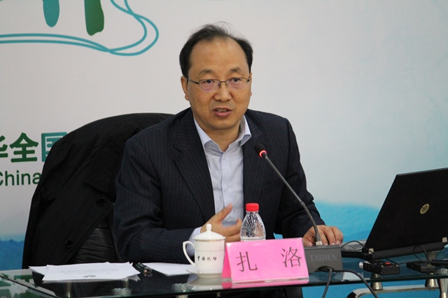 第128期“新闻茶座”主讲嘉宾中国藏学研究中心社会经济研究所所长、研究员扎洛 朱旌 摄