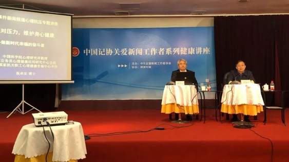 4月19日下午,中国记协与人民日报社健康时报社共同举办首期关爱新闻工作者系列健康讲座暨第85期记者大讲堂活动,邀请中科院心理健康重点实验室教授、中科院心理研究所国家公务员心理健康应用研究中心主任、中央国家机关职工心理健康咨询中心主任祝卓宏作重大突发事件新闻报道心理抗压专题讲座,帮助新闻工作者增强高强度工作下的心理抗压调节能力。