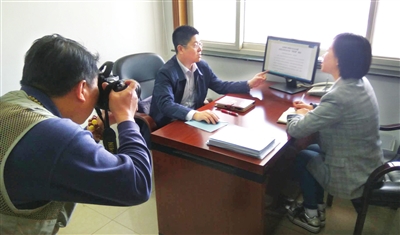 天津日报记者刘玉祥(左)在西青区张家窝镇采访调研。