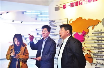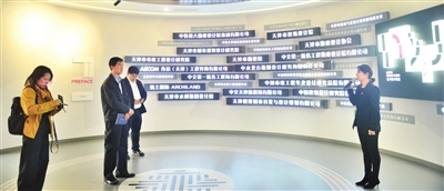 天津日报记者李玉峰(左二)、廖晨霞(左)在河西区陈塘国家自主创新示范区蹲点采访。