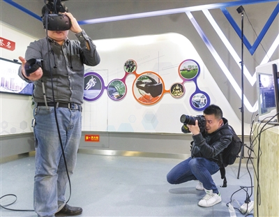 天津日报记者胡凌云(右)在“创新南开人工智能体验沙龙”蹲点采访。