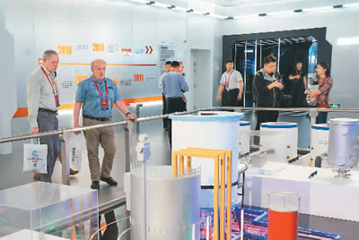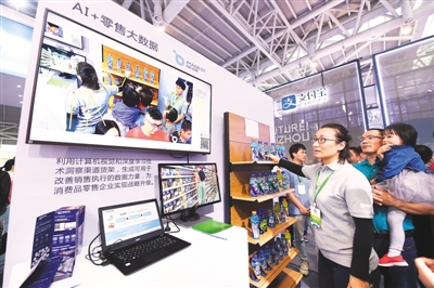 5月6日,在第二届数字中国建设成果展上,广州一家公司的工作人员(左)在介绍AI人工智能消费者行为识别。新华社记者 林善传摄