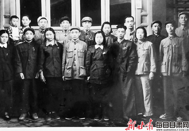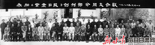 阮迪民(前排中)与参加甘肃日报创刊的部分同志