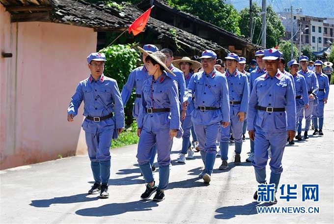 当日,参加“壮丽70年·奋斗新时代——记者再走长征路”主题采访活动的新闻媒体记者走进福建长汀中复村,上了一堂特别的党课。他们用双脚踏寻革命先辈的足迹,回顾红色历史,重温峥嵘岁月。位于福建长汀的中复村,是当年红军长征出发的第一村。 新华社记者 魏培全 摄