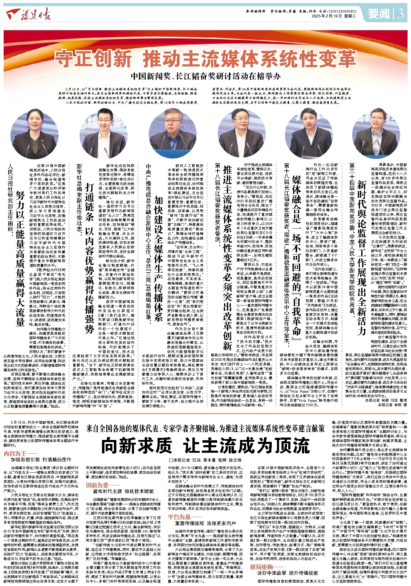 2月18日,作为中国新闻奖、长江韬奋奖研讨活动的重要活动之一,来自全国新闻界的媒体代表、专家学者聚焦增强主流舆论的穿透力、提高主流媒体的传播力、推进新型主流传播平台建设、建设更有效力的国际传播体系等主题进行专题研讨。