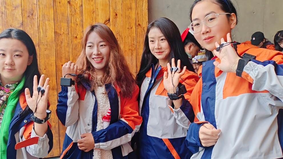 “新物种”营员佩戴好由新华网融媒体未来研究院研发的生理感知设备,进行多民族艺术的生理感知测评