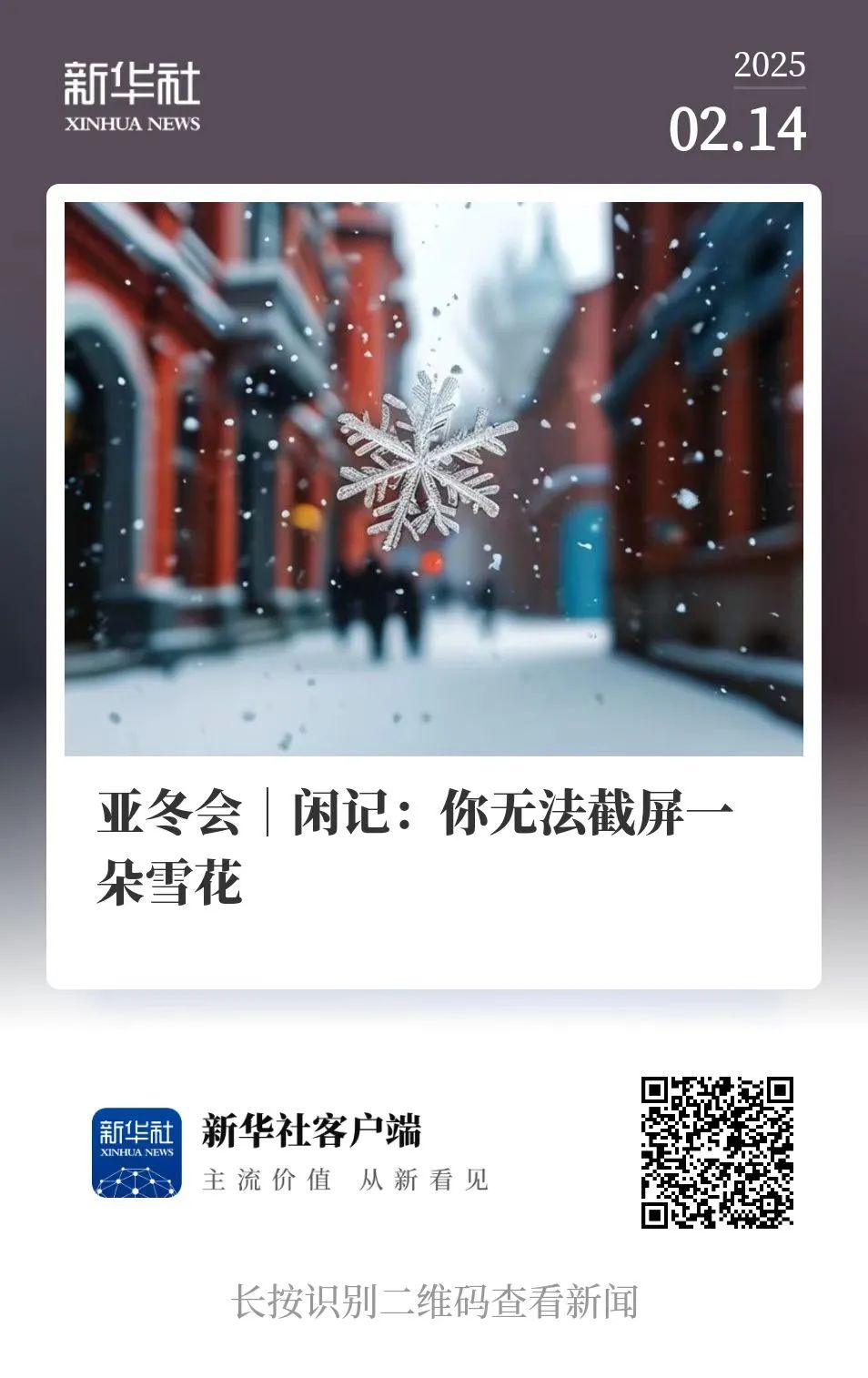 文章的作者随后放下手机,用全身感官沉浸于亚冬会赛场:冰刀划过冰面的触电感、雪花清新的气味、雪落下的细微声响,这些无法被二进制数据完全复刻的体验,成为体育之美最鲜活的注脚。在数字时代,人类应更珍视“去听、去看、去闻、去触碰”的原始能力,因为“无须截屏一朵雪花”,真实的生命体验本身就是永恒的存在。