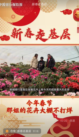 走得远、走得深、走得实也是此次“新春走基层”过程中,记者们一直秉承的信念。如《探访茂县平头羌寨“痴农人”》中,记者翻山越岭去到四川省阿坝藏族羌族自治州茂县坪头羌寨,探访当地将荒山变果园,土坷垃里挖出了“金娃娃”的故事;《吴玉杰的牵挂》中,记者通过讲述吴玉杰一家世代居住在黑龙江边的小渔村故事,以小见大,聚焦金融助力下的乡村发展,以及基层干部群众奋斗的故事;《那姐的花卉大棚不打烊》《吴达的幸福菜》《绿萼红果满园春》《强村富民路上有盼头》等作品,讲述了记者春节期间走到田间地头,下沉到农户的种植大棚,了解金融助力下农户生活发生的改变,展现了基层群众的喜怒哀乐,引发共鸣,其中,《那姐的花卉大棚不打烊》视频播放量超11万,点赞超661条,该视频被邮储银行官微转发。