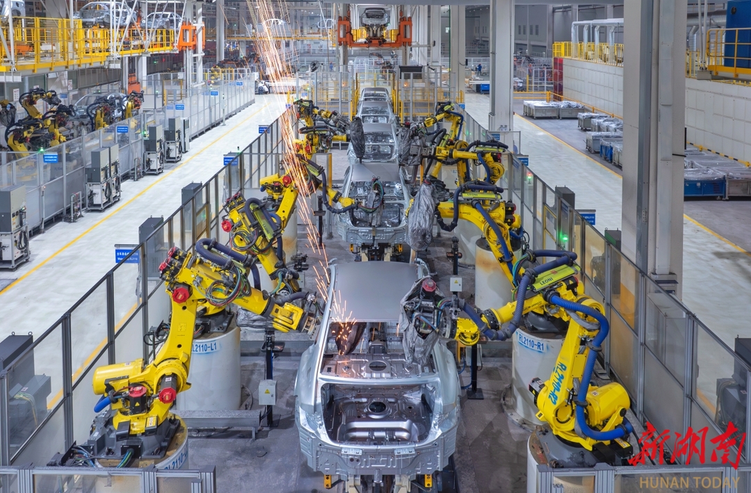 走进长沙比亚迪雨花工厂,智能化生产线上机械臂伸缩旋转,轿运车满载新车鱼贯而出,成为流动的风景线。