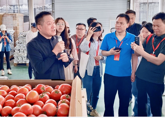 河南孟电集团党委书记、董事长范海涛向媒体人介绍西红柿