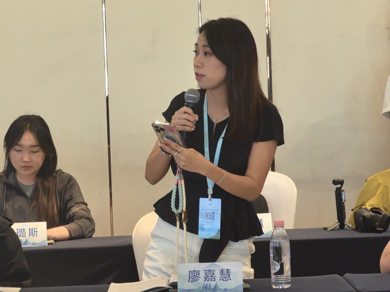 香港巴士的报编辑陈红月在现场提问。