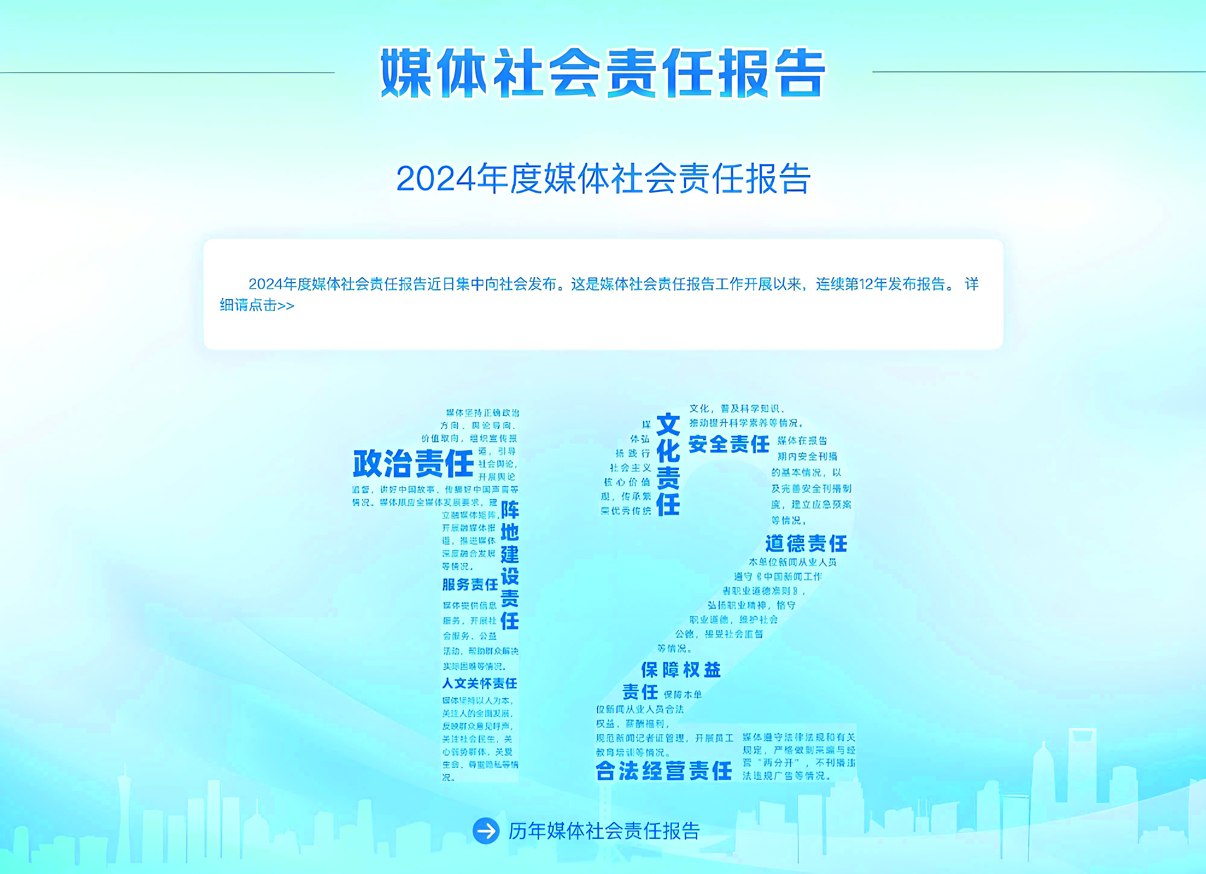新闻媒体把撰写发布社会责任报告作为检验高质量履责、强素质形象、展优良作风的重要窗口,高度重视、精心组织、统筹推进,自2014年以来连续第十二次发布社会责任报告,作风愈加扎实,形象更加鲜明,履责成效日益凸显,社会责任报告工作实现了高质量发展。