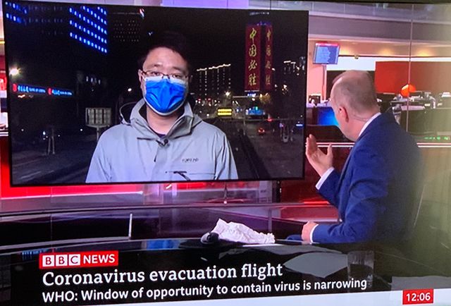 CGTN前方记者(左)连线BBC。