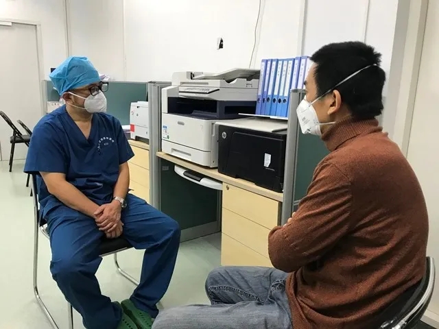 中央广播电视总台记者张鹏军在武汉市武昌医院采访。