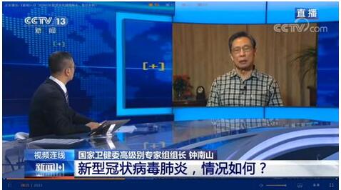 1月20日,中央广播电视总台新闻频道《新闻1+1》栏目播出的白岩松特别连线国家卫健委高级别专家组组长钟南山院士报道页面截屏