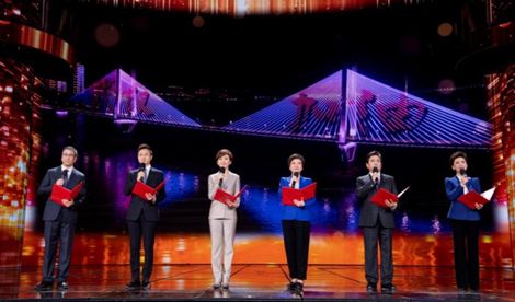 中央广播电视总台2020年元宵节特别节目现场,白岩松、刚强、欧阳夏丹、贺红梅、水均益、海霞在共同演绎情景报告《你的样子》。