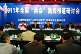 [人民日报社"两会"报道领导小组副组长兼秘书长、新闻协调部主任 曹焕荣]各位领导、各位同行:和历年一样,今年的两会报道,今天,会议组织者给人民日报的发言出了一个题目--如何在两会报道中加强舆论引导,这是符合实际的。和历年一样,今年的两会报道,人民日报始终把舆论引导的任务摆在首位,从报道方案设计、人员培训,到组织实施和会后总结,都一以贯之。