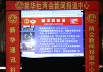新华网两会报道大屏幕显示屏在人民大会堂亮相