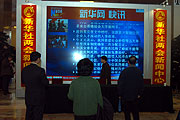 政协委员在人民大会堂大厅观看“新华网快讯”