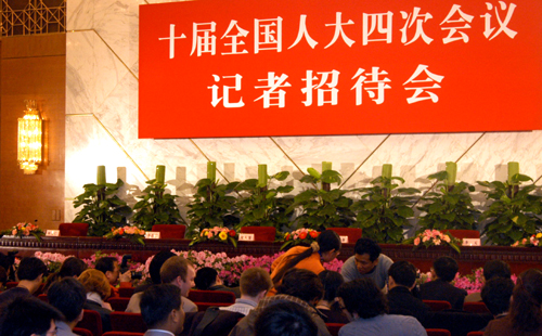 记者等待招待会召开