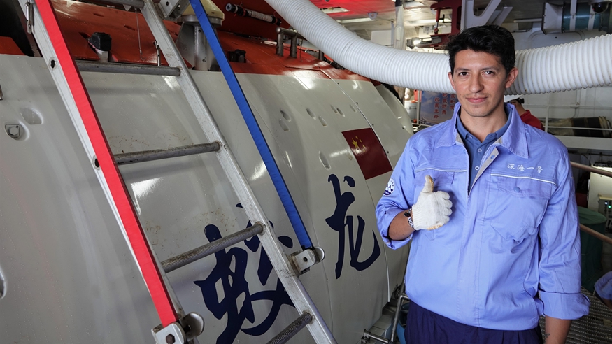19日,“蛟龙号”载人潜水器搭载潜航员傅文韬、赵晟娅以及来自哥伦比亚的科学家海梅·安德烈斯,在西太平洋海域完成2024西太平洋国际航次科考的第2潜次作业,这是“蛟龙号”首次搭载外国科学家下潜作业。