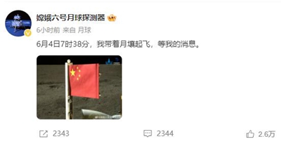 来自月球的IP地址!6月3日,认证为“嫦娥六号”的“嫦娥六号月球探测器”官方微博账号创立,IP地址显示为“月球”。4日,账号更新发文:“6月4日7时38分,我带着月壤起飞,等我的消息。”