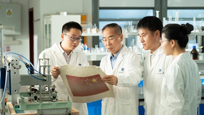 月面温差大、辐射强,普通材质的国旗难以满足要求。研制团队联合武汉纺织大学等单位开展了玄武岩纤维旗面的研制攻关,陆续攻克了纤维成型、织物织造、印花染色以及旗面与展开机构适配等技术难题,使生产的月面国旗能够适应月球表面的恶劣环境,保障了国旗展示任务的圆满成功。