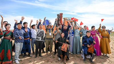 嫦娥六号返回器在阿木古郎草原着陆,草原人民骄傲自豪。现场,一些四子王旗乌兰牧骑的队员们,身着盛装,载歌载舞,歌声、掌声、欢呼声响成一片。
