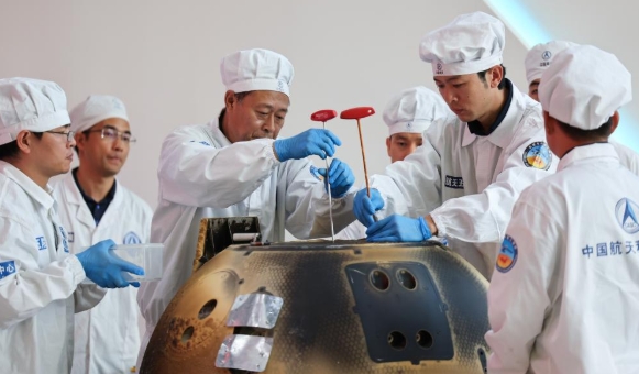 仪式现场,科研人员对嫦娥六号返回器进行开舱,检验关键技术指标完成情况。探月与航天工程中心、地面应用系统、探测器系统代表签署了交接书。后续,地面应用系统的科研人员将按计划开展样品储存、分析和研究相关工作。
