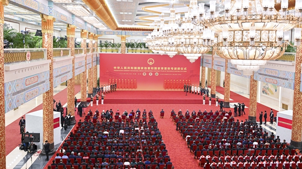 颁授仪式结束后,新华社记者采访了国家勋章和国家荣誉称号获得者及其家属、学生。大家表示,要牢记习近平总书记的殷殷嘱托,坚定理想、务实担当,不忘初心、永远奋斗,矢志把强国建设、民族复兴伟业推向前进。
