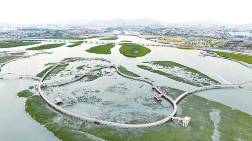 福建省厦门市滩涂面积广阔,湿地资源丰富,适宜红树林的生长。20世纪90年代以来,厦门市开展红树林保护和恢复种植工作,逐步形成广泛分布于海湾湿地及城市公园的红树林种植带,构筑起人与自然和谐共生的生态屏障。位于厦门市翔安区的下潭尾红树林公园,即是其中的优秀代表。
