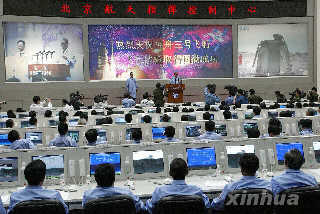 飞船返回图6:载人航天工程负责人在指挥大厅宣布第三次飞行试验取得成功